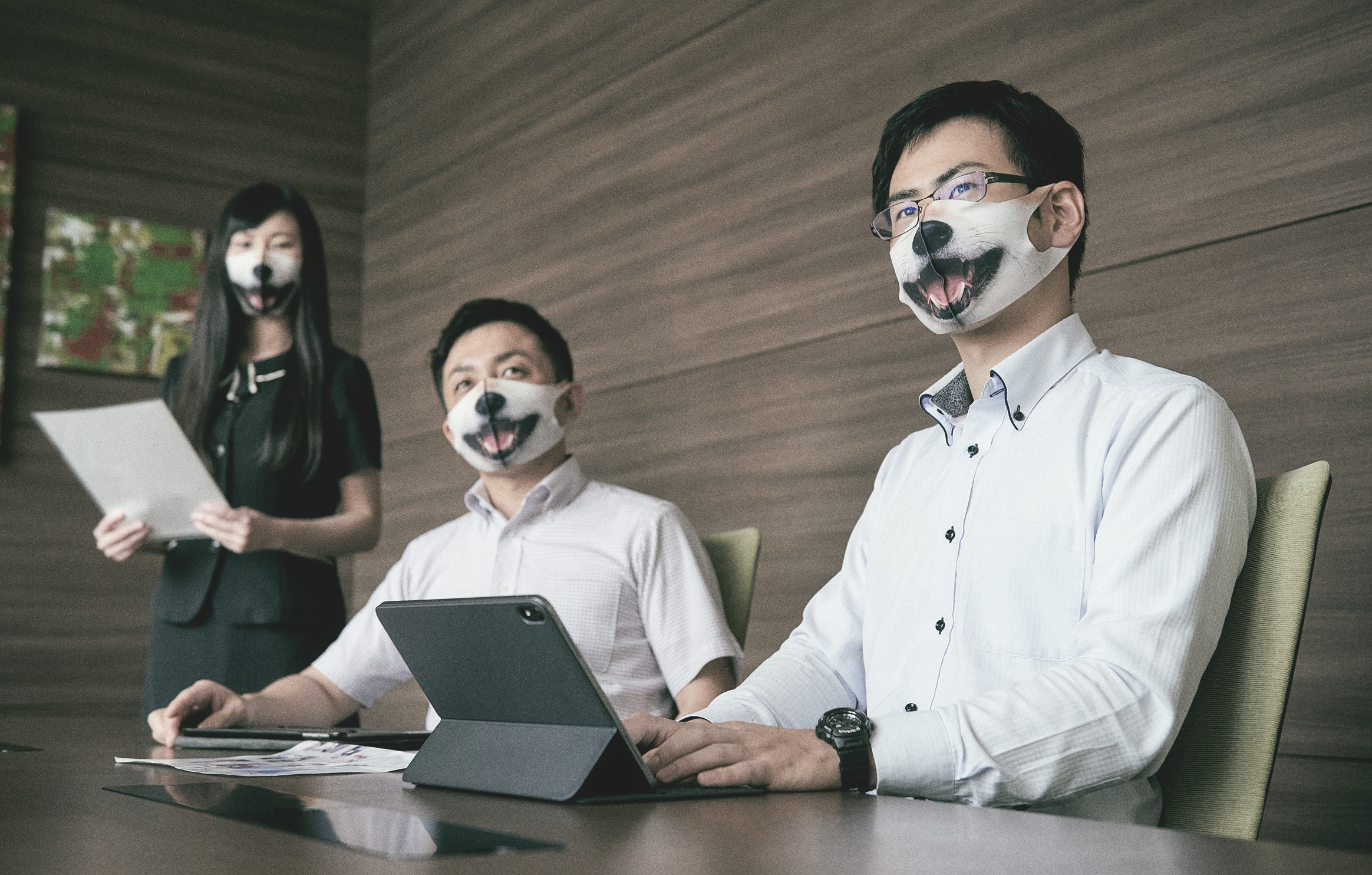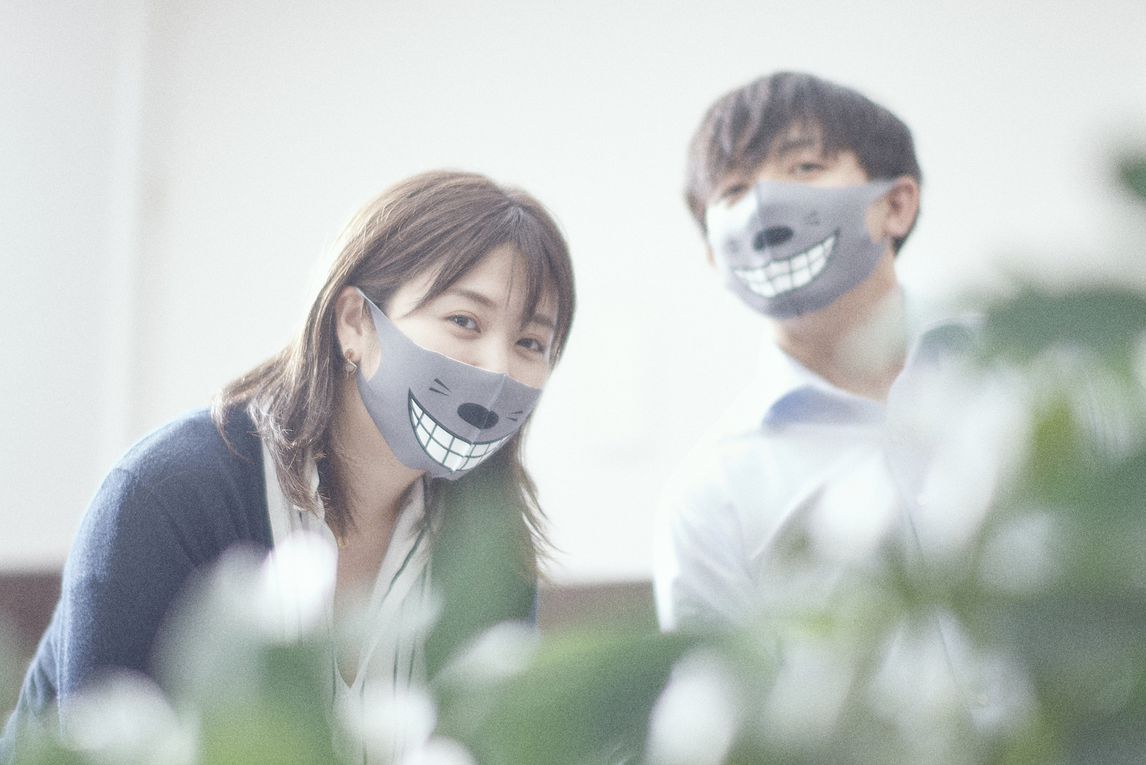 2020年夏の特設サイトのテーマは、お客様と「ともに笑顔に」なれる新日本印刷オリジナルのスマイルマスクコレクション。新日本印刷のロゴ、モンスター、ライオンやアヒル、チンパンジーなど10種類の様々なスマイルをプリントしたスタイリッシュなマスクを作成しました。貴社のオリジナルマスクのご用命も承ります。