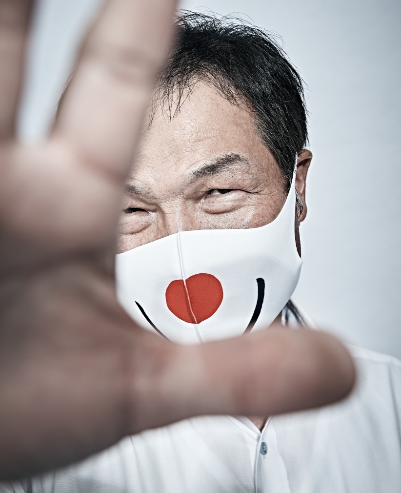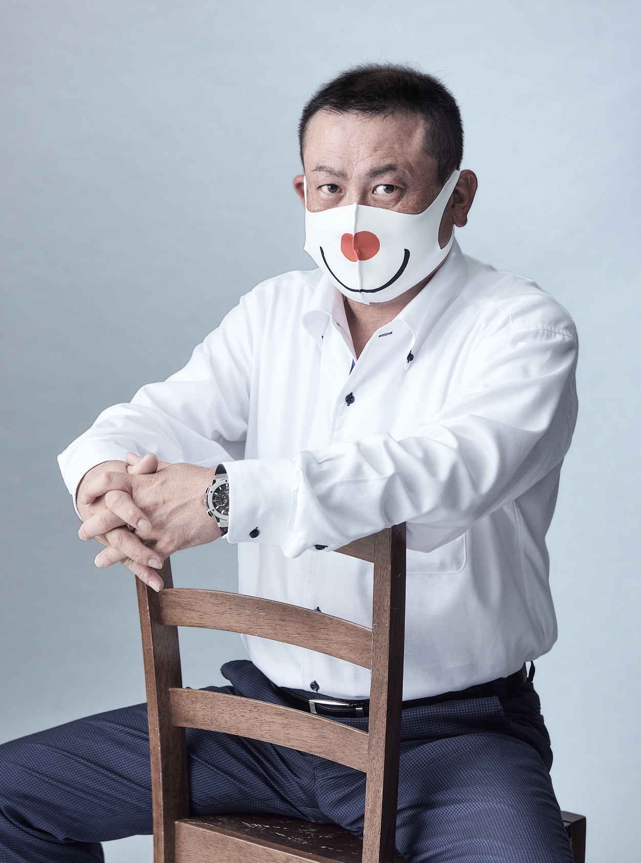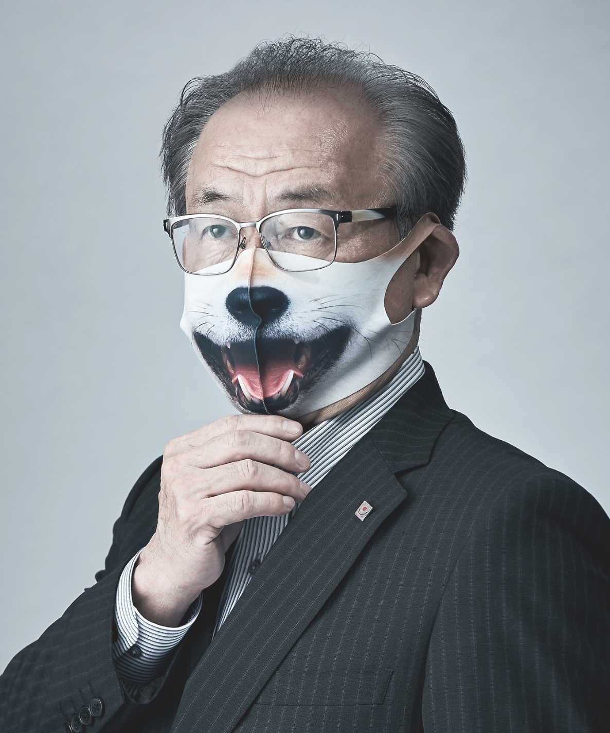 新日本印刷ロゴマークのマスクスタイル。身も心も会社に捧げ、年輪を刻んだ男の皺。生き様もお洒落も、ダンディズムのヒントがここにあり。