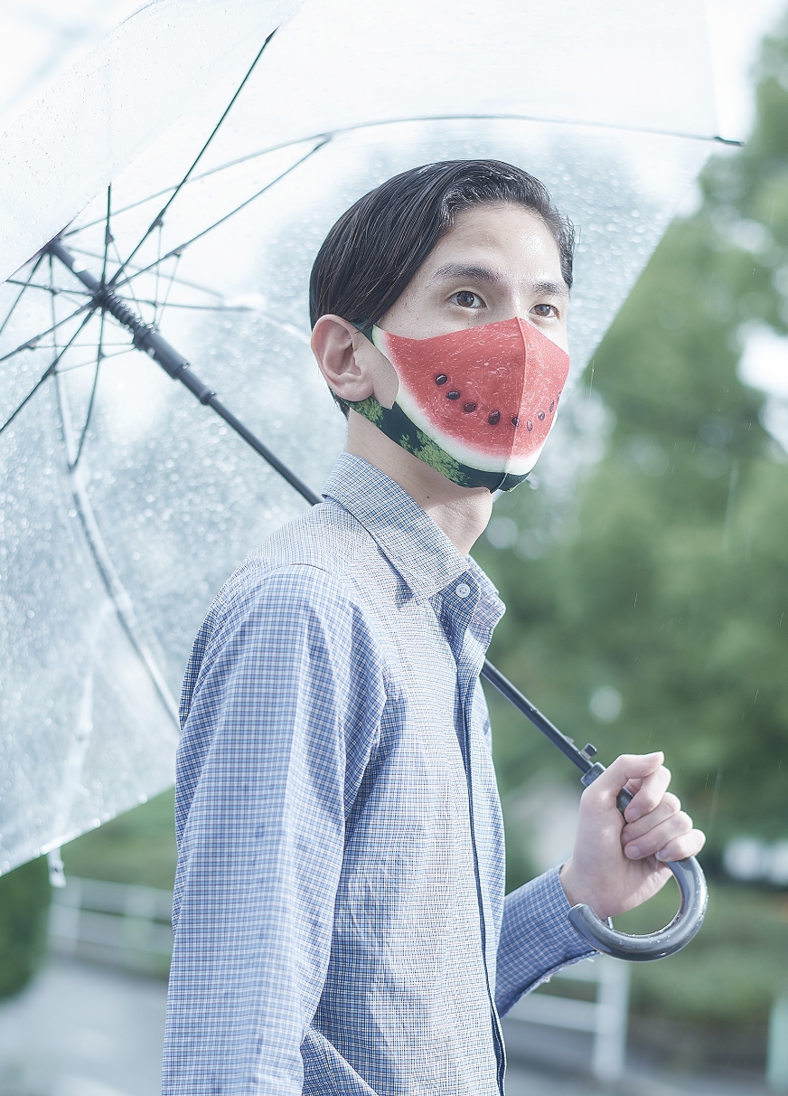 タネで、スマイルを表した夏定番のスイカスタイル。流行やトレンドに左右されないこのマスクは何枚あっても困ることなし。